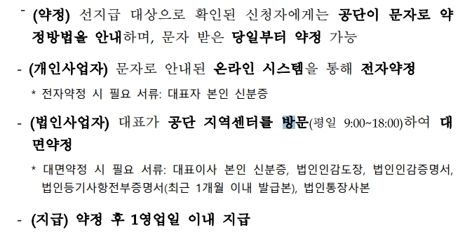 ① 신청 후 선지급 대상자 확인되면 소상공인시장진흥공단에서 약정방법 안내 문자 전송